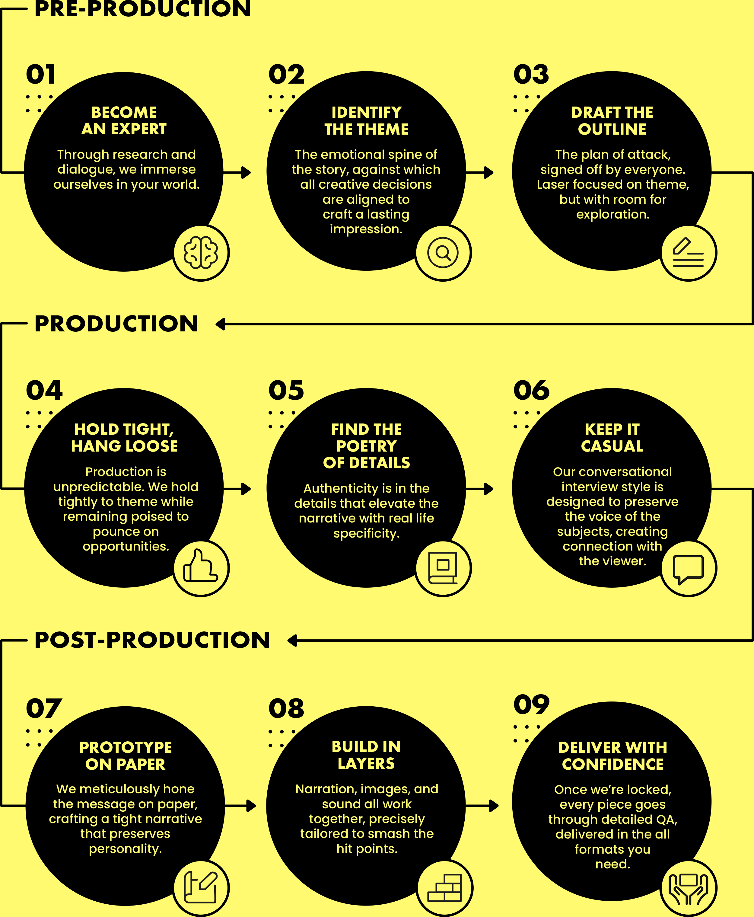 A beginning, middle, and end that shows transformation, and that lands the impact of your brand with a punch.